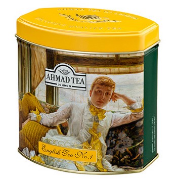 Лучшие сорта чёрного чая Ахмад продаются в жестяных банках, на которых изображены картины английских художников XIX века. Виды природы и благородные лики привлекают к себе внимание, завораживая сценами и пейзажами старой Англии. Чай в такой упаковке может стать прекрасным подарком или украшением интерьера.