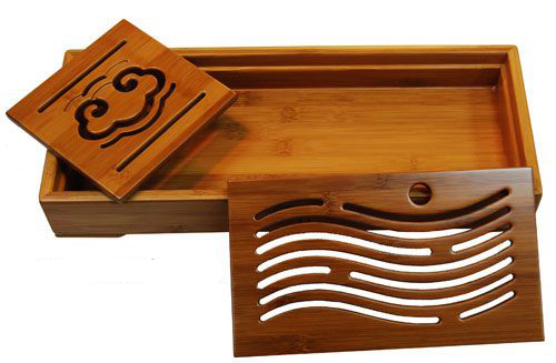 Чайная доска – один из главных элементов классической чайной церемонии (на китайском звучит как «чабань»). Самыми дорогими и красивыми чайными досками считаются сандаловые, но для домашних чайных церемоний вполне подойдет и бамбуковая доска. В доске обязательно должен быть поддон или шнур, по которому будет стекать вода. Можно сказать, что чайная доска является основой чайной церемонии. Фотографии самых распространенных чайных досок можно будет посмотреть здесь. Нажмите на картинку, чтобы ее увеличить и ближе рассмотреть чабань.